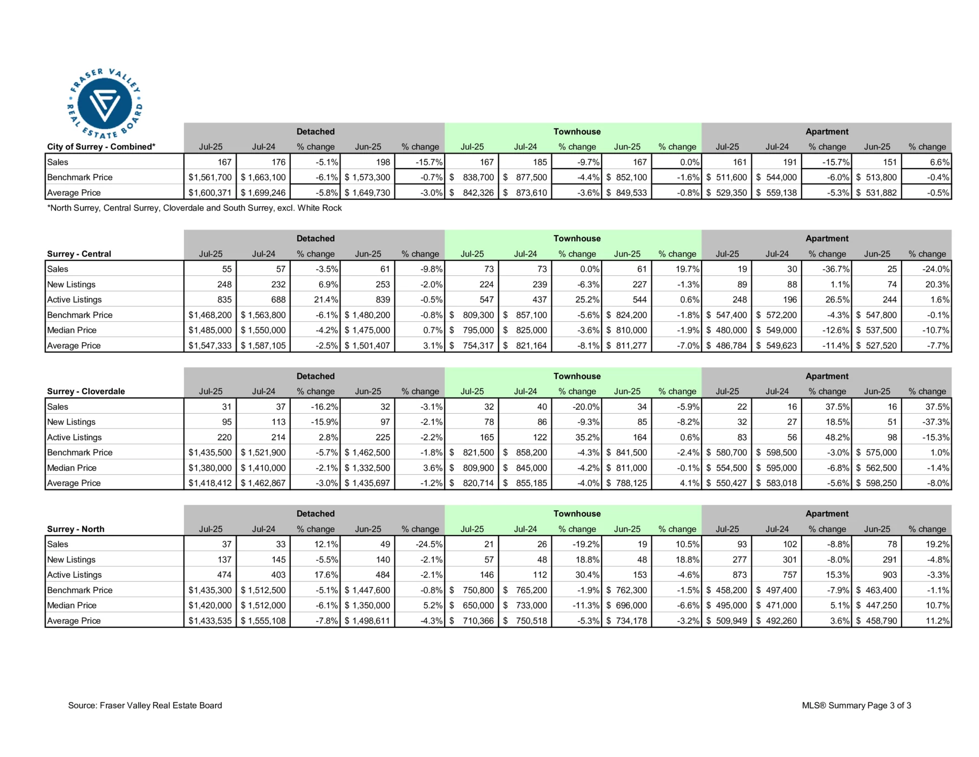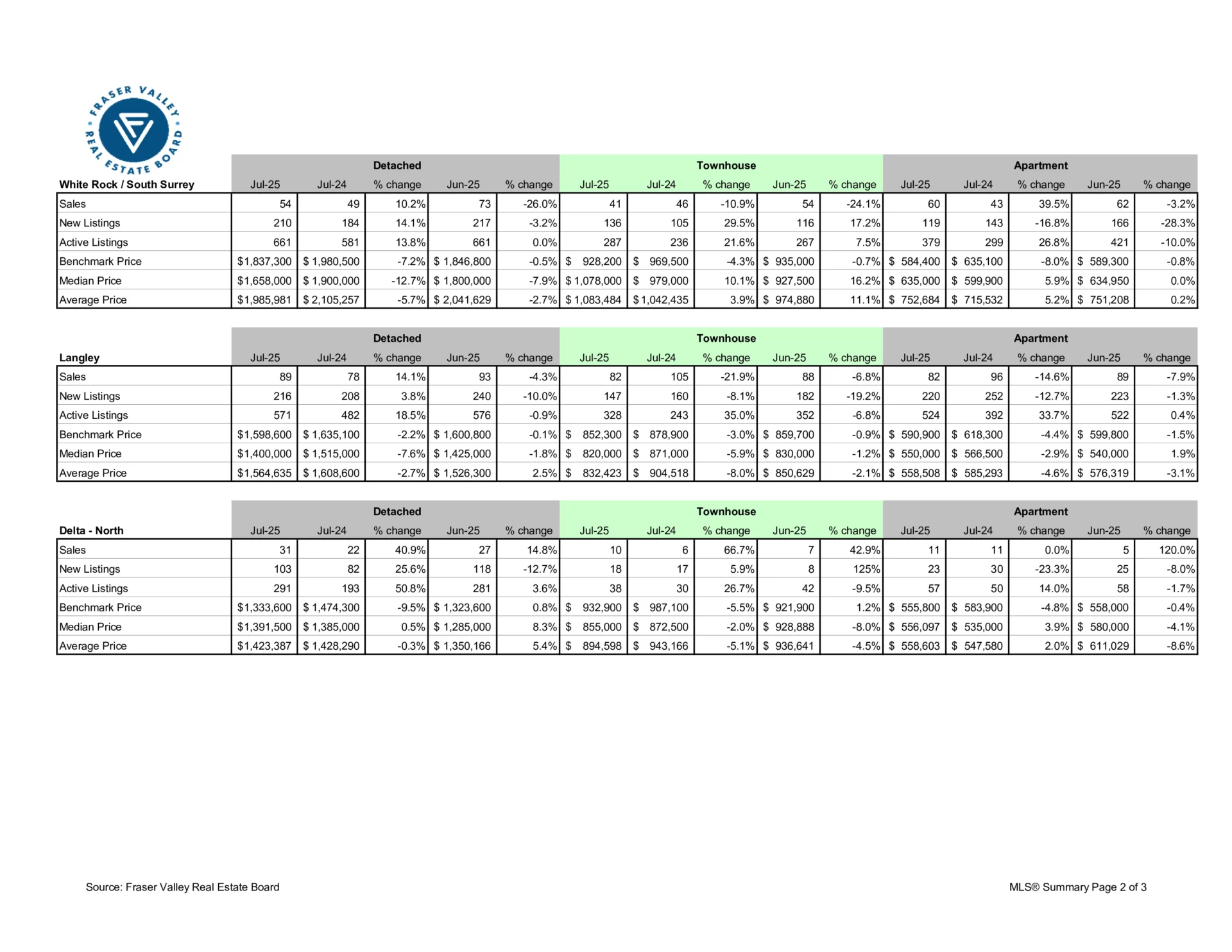 July 2025 Fraser Valley Real Estate Board Statistics – Fraser Valley real estate sales activity levels off as market enters seasonal slowdown