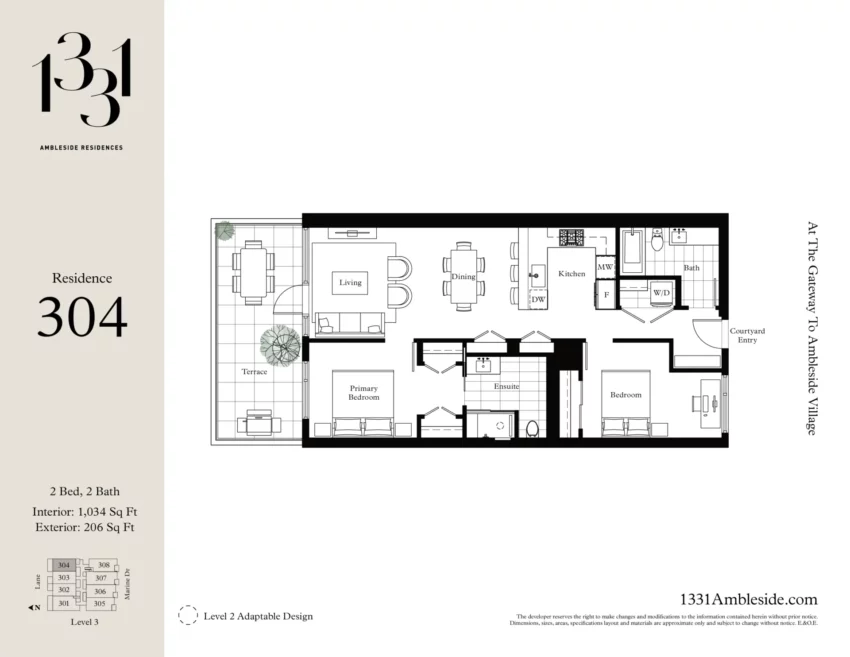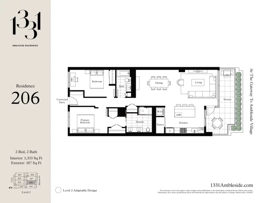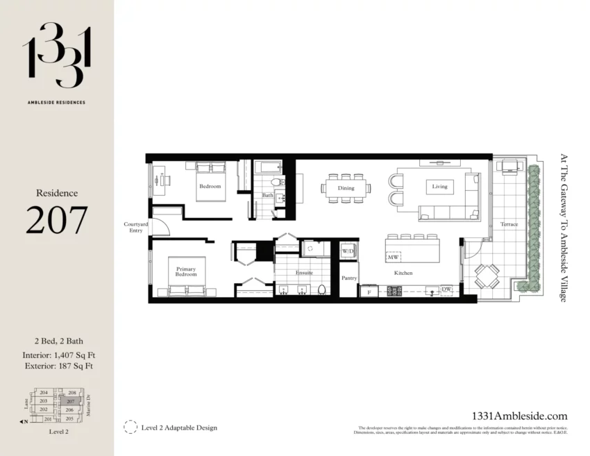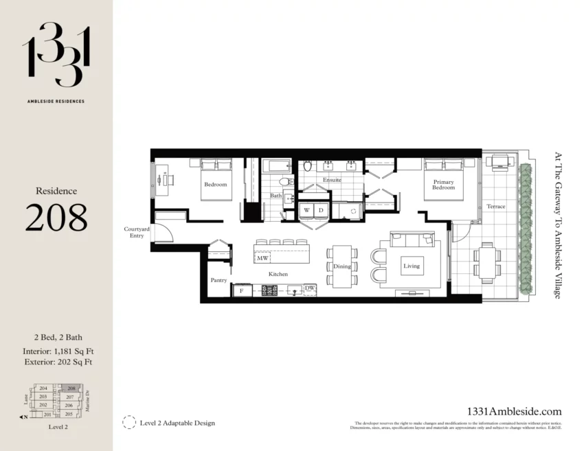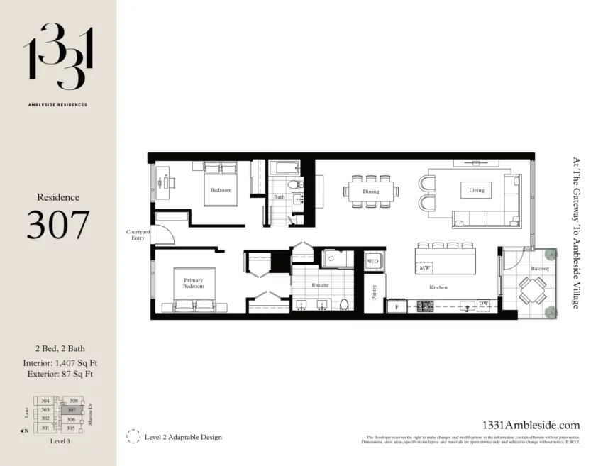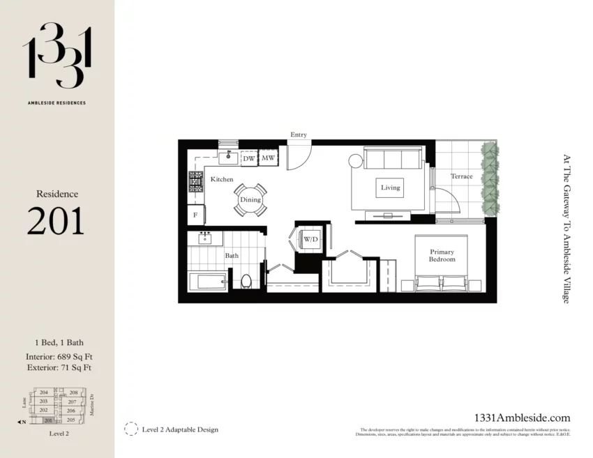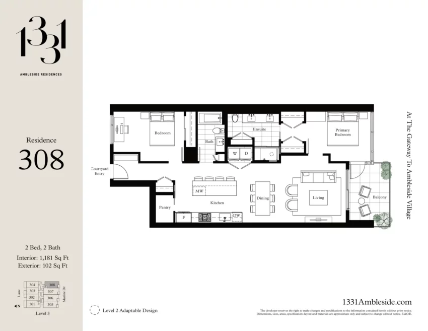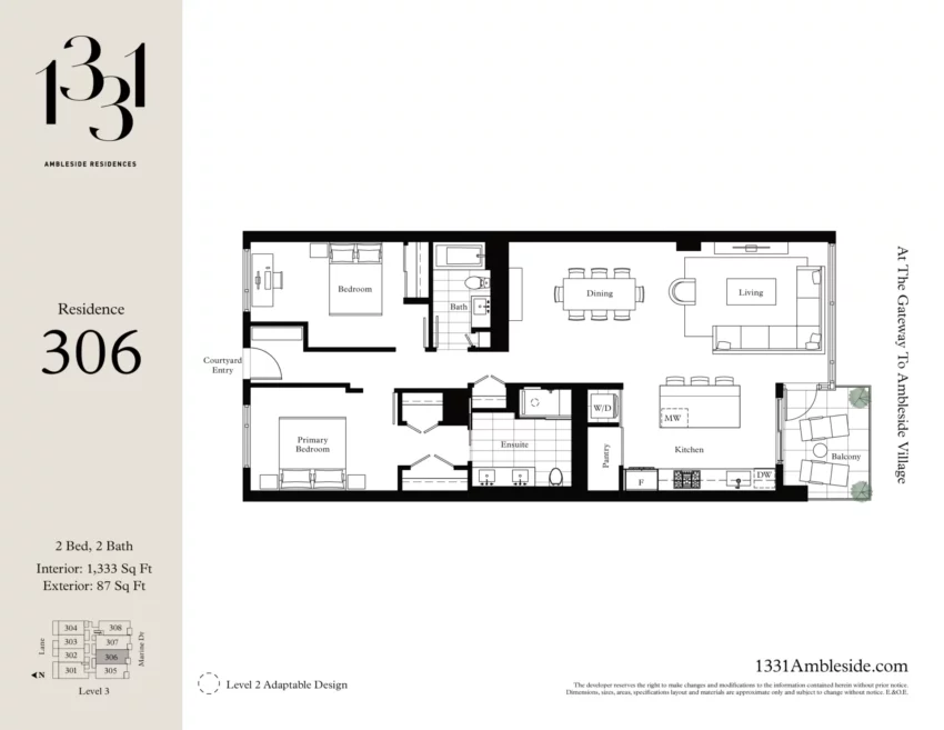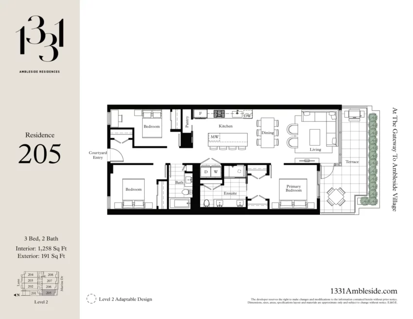 Developed by Pacific Lyte Asset Management, 1331 Ambleside Residences presents a selection of one, two, and three-bedroom homes. Each residence is thoughtfully designed with open floor plans, emphasizing both functionality and aesthetic appeal. The building also includes 5,165 square feet of commercial space on the ground floor, enhancing the convenience for residents. With 38 underground parking spaces, ample parking is available for both residents and visitors.
