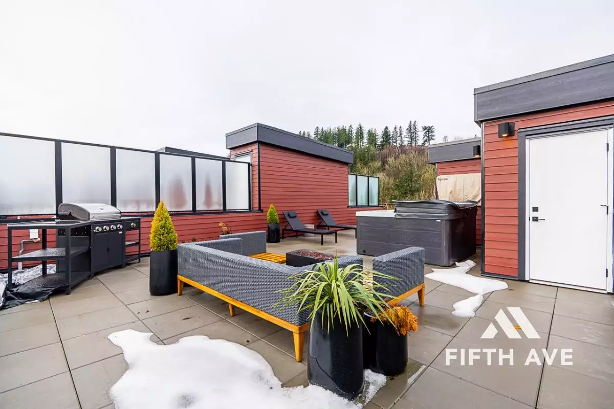The rooftop patios offer breathtaking views, privacy screens, gas grill outlets, and hot tub hookups, providing an unparalleled outdoor living experience.
