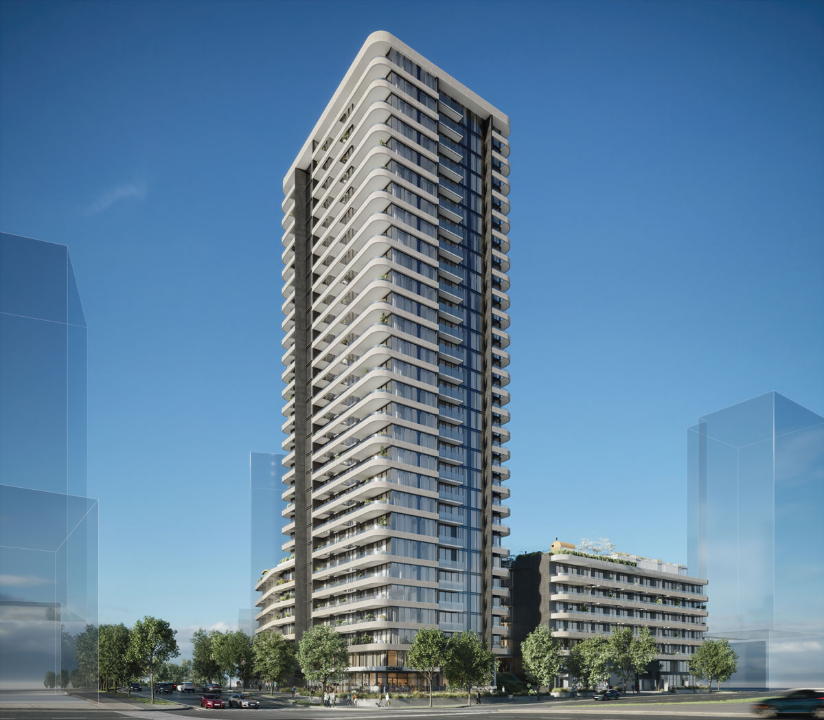 Harlin at River District, developed by Wesgroup Properties, is a prominent addition to South Vancouver‘s landscape. This project, designed by Boniface Oleksiuk Politano Architects, is a testament to the area’s rich forest industry history and its proximity to the Fraser River. The development’s façade, with its rippled edges, is a nod to these historical and geographical elements.