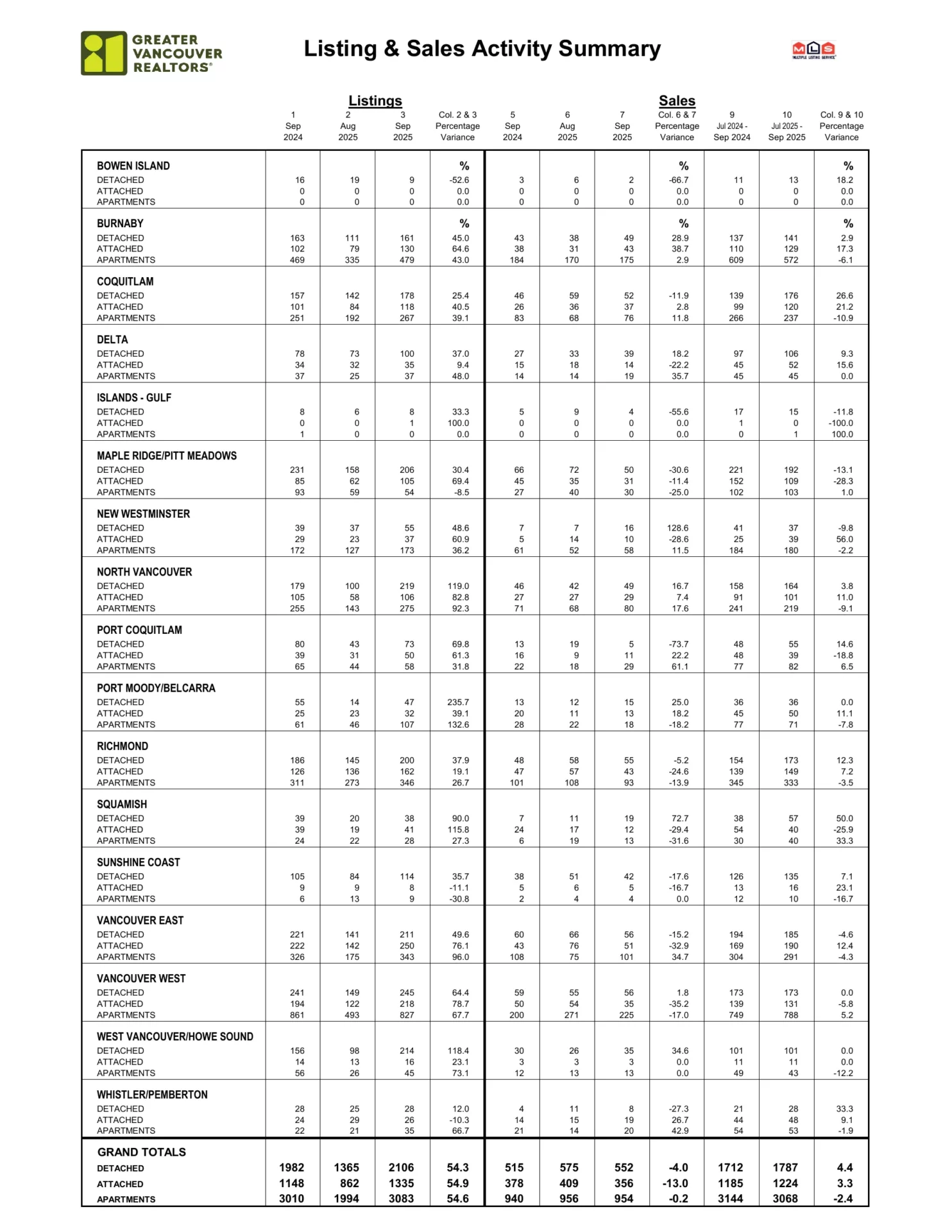 September 2025 Greater Vancouver Realtors Statistics – Fall market favours buyers